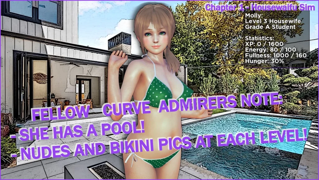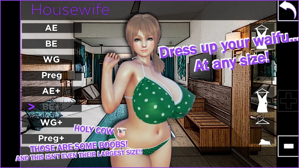 Housewife Simulator is a highly adult game / VN with a BBW / weight gain / lactation focus. Don’t play it if you’re not also into such interests.