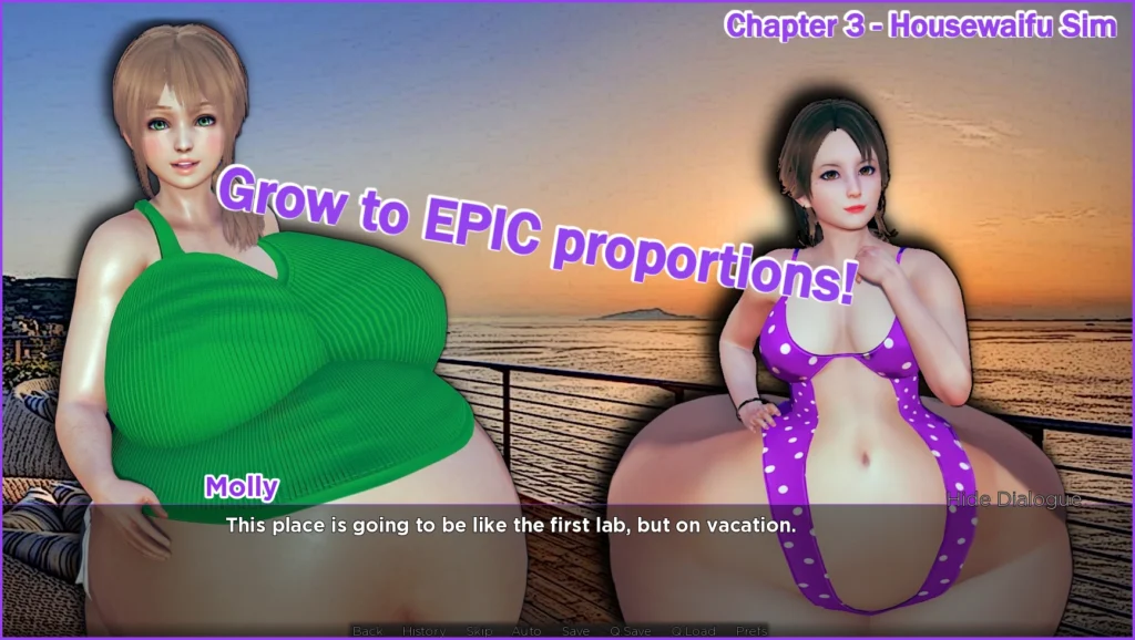 Play a newlywed housewife in a curvy story about growing love, expanding waistlines, corporate bio-science, and taking experimental treatments irresponsibly to enhance women in all the right ways!